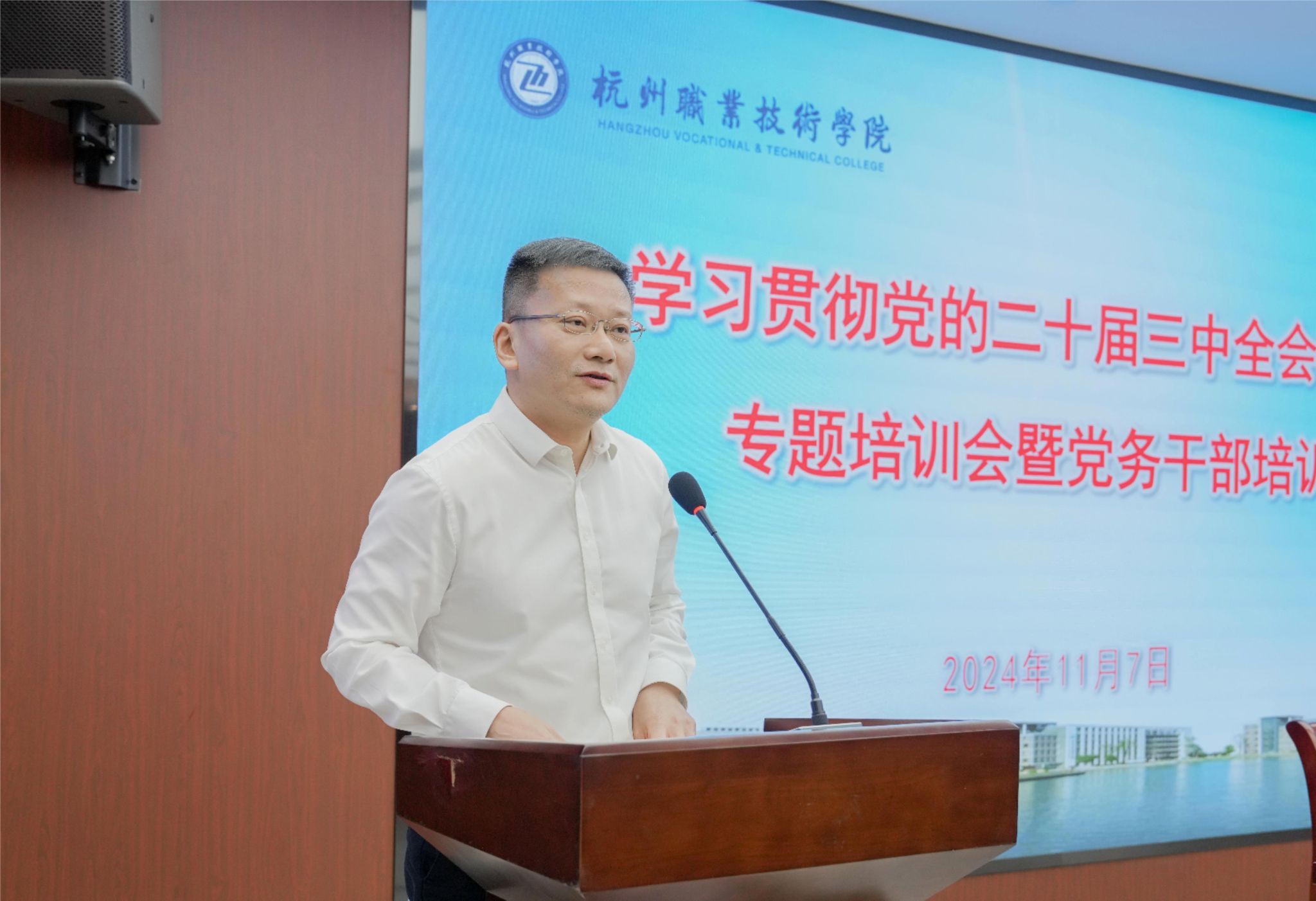 杭州师范大学公共管理学院教授黄俊尧作题为《进一步全面深化改革,推进中国式现代化》的辅导报告,细致解读进一步全面深化改革的指导思想、总目标、重大举措,以及全会关于深化教育综合改革的新部署、新要求,为学校持续深化教育教学改革提供具体指导。