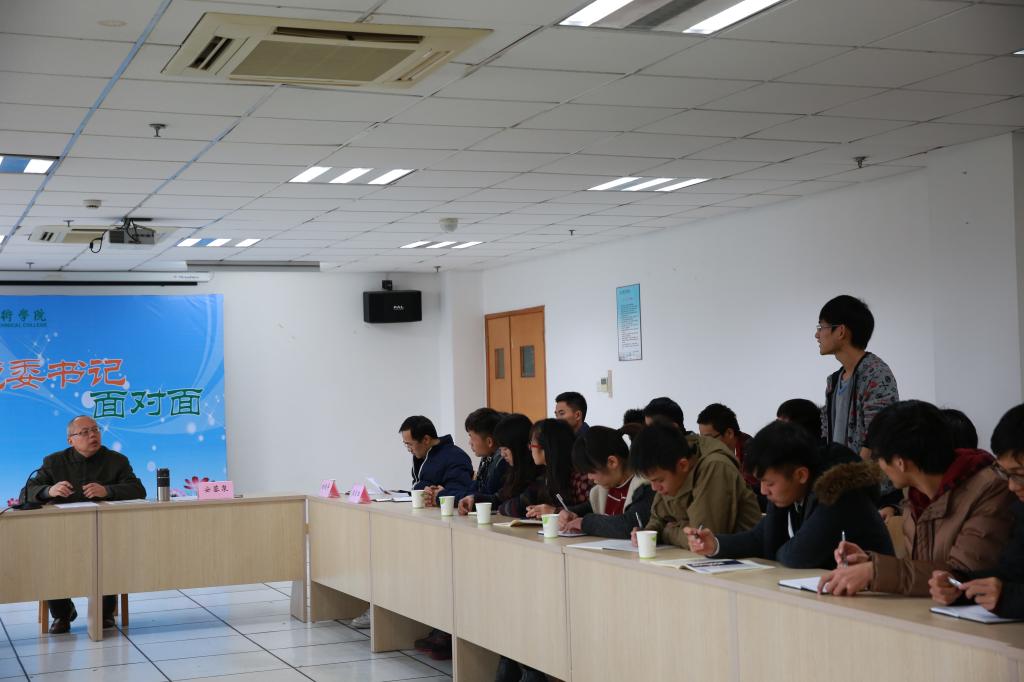 12月10日下午,学生活动中心215会议室举行了“我和党委书记对话”活动。校党委书记安蓉泉,宣传部、学工部、人文社科部相关负责人及六十多位学生一同参加了此次活动。