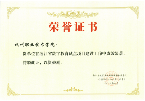 建设期间,学校聚焦数字化带动教育教学和校园治理转型升级,以系统融合、业务融通和数据融汇为路径,构建了智慧校园“四横四纵”建设体系,全面提升学校数字化教育教学水平。依托“学在浙江”基座在“浙里办”上线“学在杭职”分学习平台,同步推进云端布局,借助之江汇云平台构建“云上优质职业院校”,实现教学资源跨时空共享。学校在推进“数智杭职”建设工程中,与政府管理部门、行业协会、网络运营商、校企合作企业、智库专家学者形成多方协作,以“应用为王”指引,推动数据融通和管理融合,实现教学、管理与服务全场景应用贯通,推动教育数字化从“建系统”向“用实效”跨越,赋能职业教育“五金”建设。
