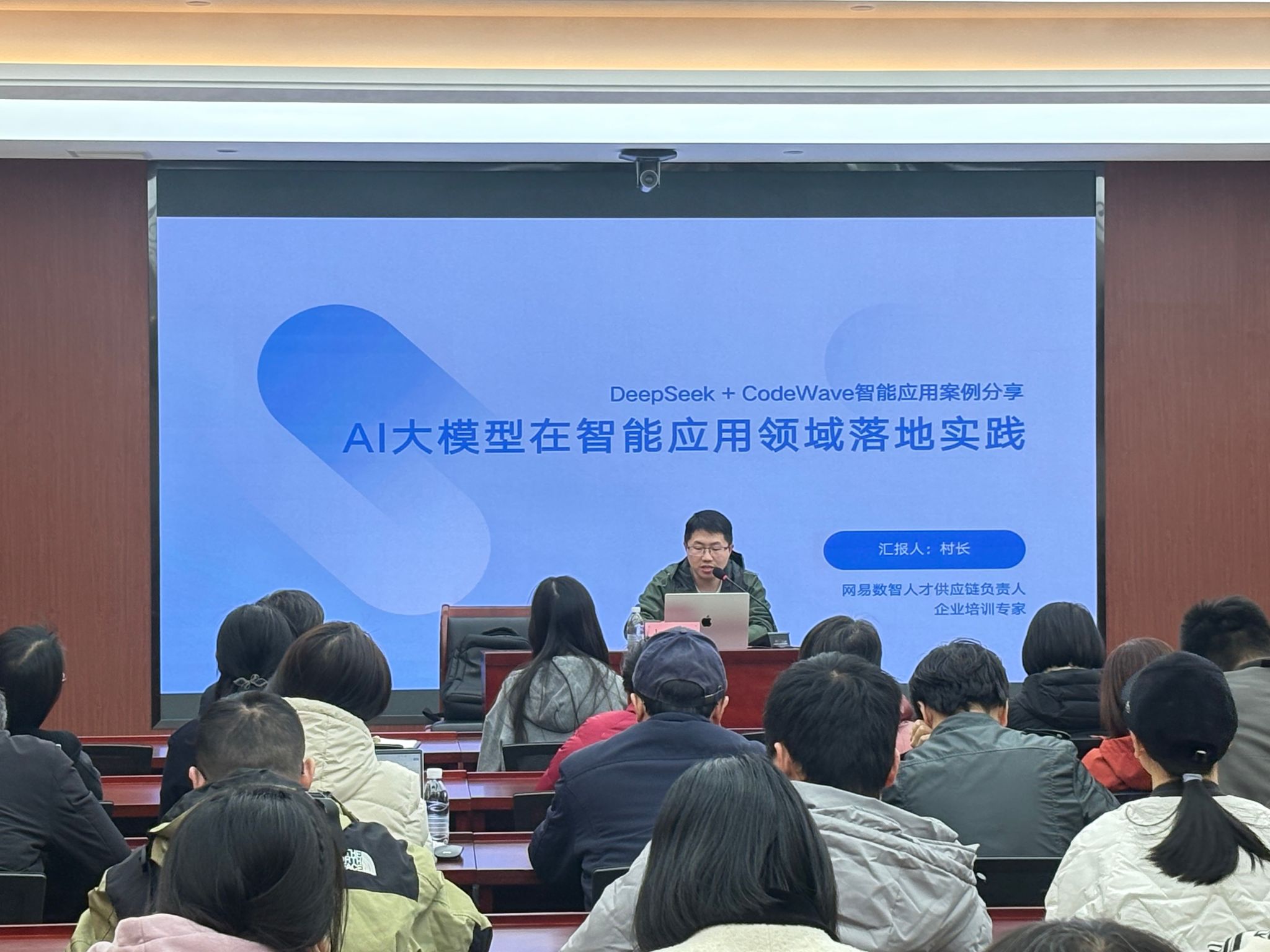 3月20日下午,信息工程学院联合校教师发展中心举办了融善大讲堂——信息化素养提升第7期讲座,本次邀请了网易数智人才供应链负责人杨涛作了题为《deepseek+codewave智能体应用创新实践》的专题培训,来自各二级学院的70余名教师齐聚一堂,共同探讨AI技术在教育领域的创新应用与未来发展。