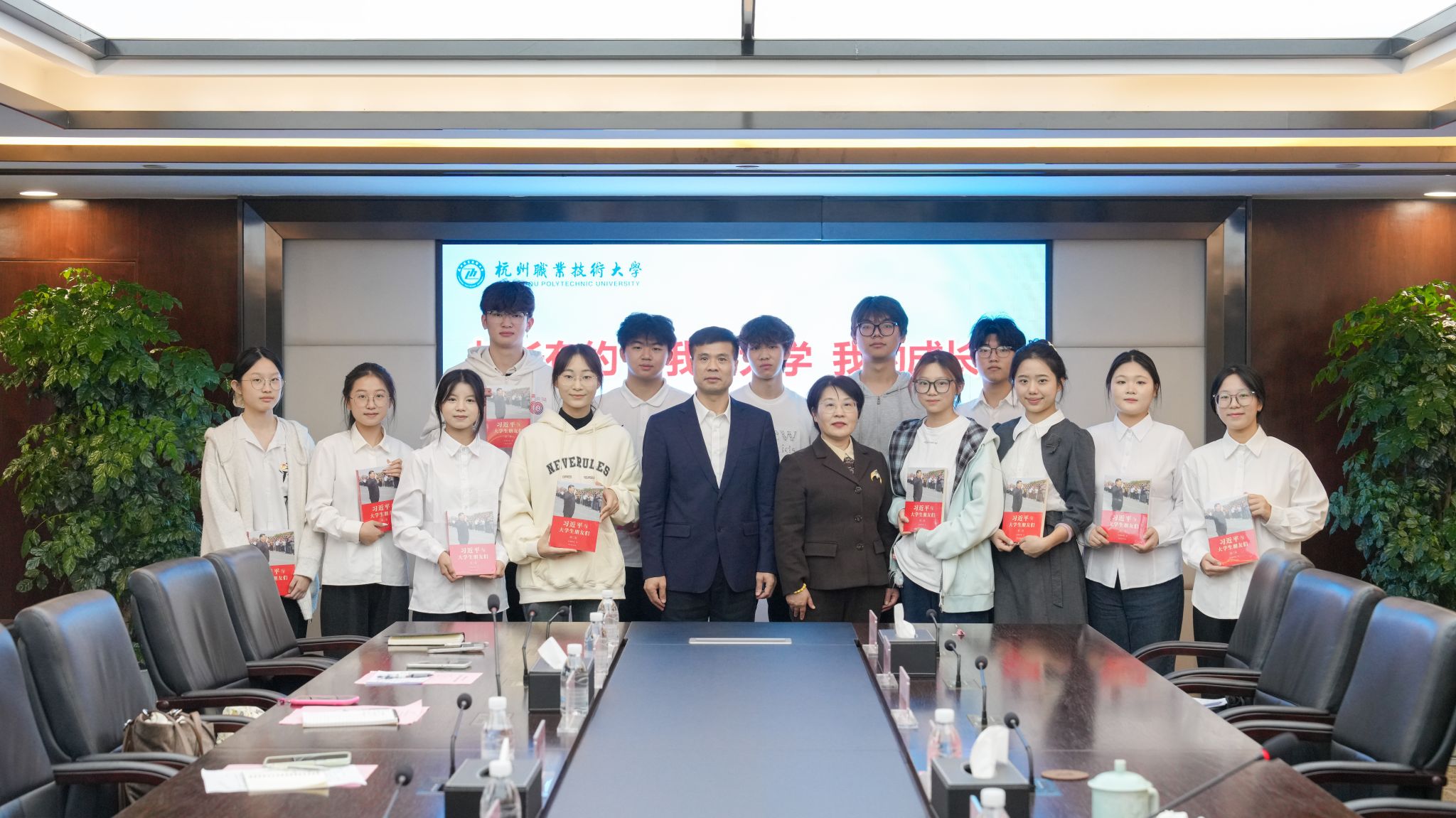 座谈会最后,黄兆信向参会学生赠送《习近平与大学生朋友们》一书,勉励同学们在杭职大融善成长、人人出彩。