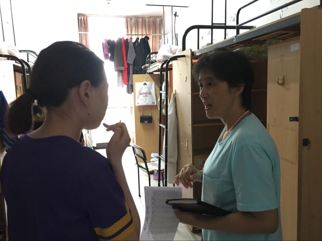会议结束后,全体党员教师分组走访了各自联系的寝室。谢萍华查看了寝室的卫生状况与生活设施,指导学生按照文明寝室标准,保持寝室干净整洁,消除安全隐患,将文明寝室创建与学生文明修身教育、文化校园建设紧密结合。党员教师与学生们谈心谈话,了解了学生的生活情况和实际需求,并为学生答疑解惑。学生们积极与老师交流,感谢老师们的关心,并表示对于老师们指出的问题会努力整改,保持良好的精神风貌,营造和谐的寝室文化。